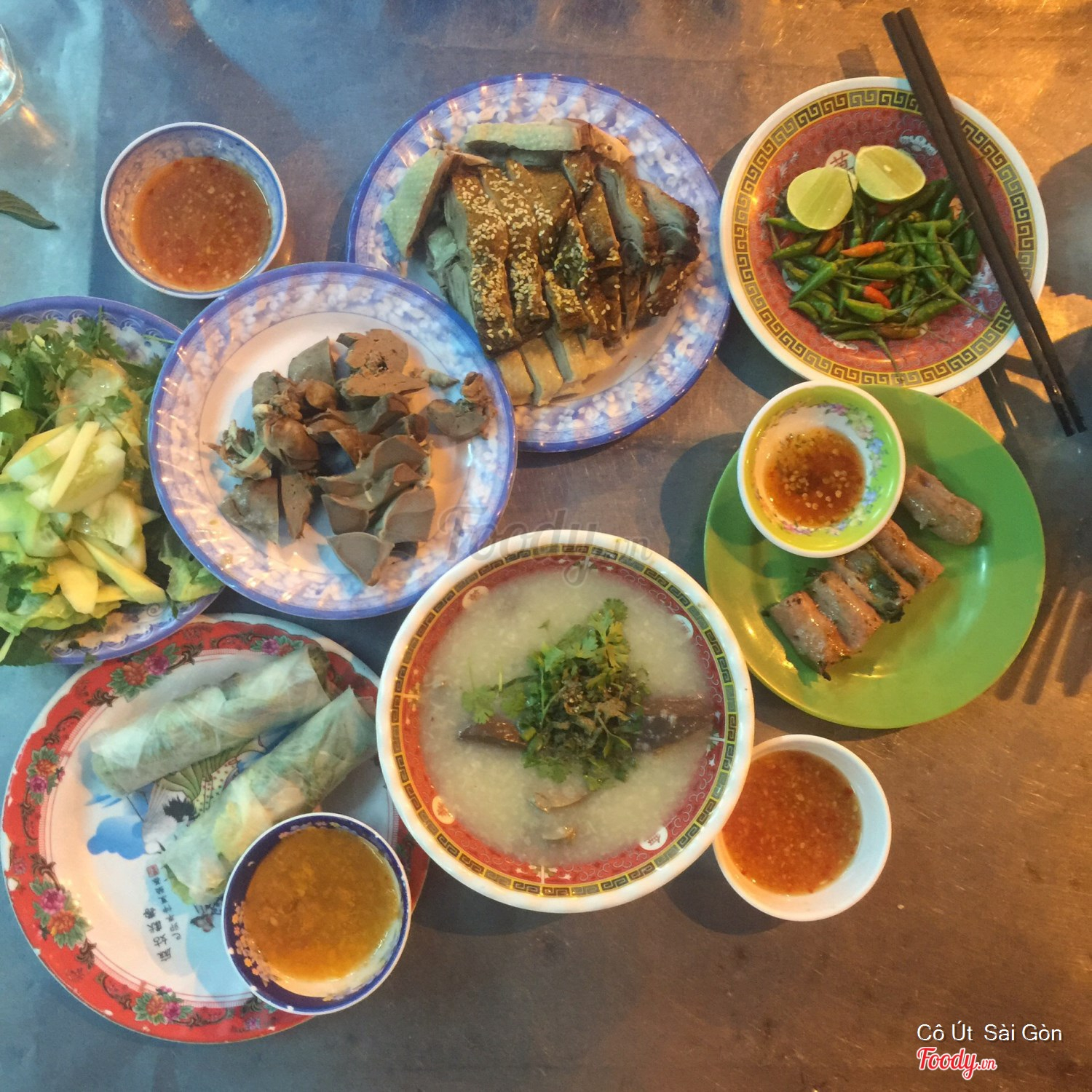 Cháo gà + thịt vịt nướng + luộc + nem + gỏi cuốn