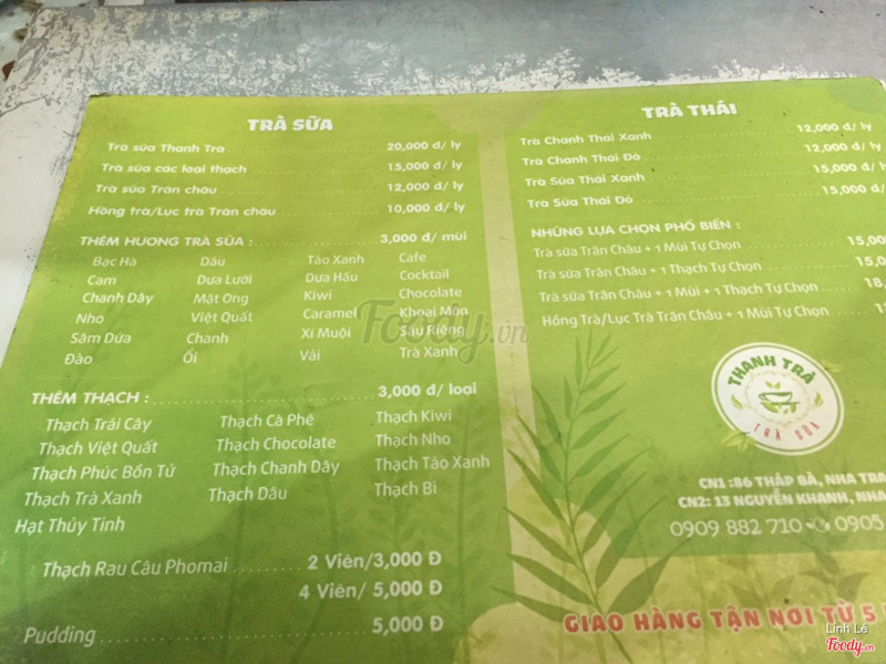 7.8Thanh Trà - Quán Trà Sữa.Quán nằm ở gần cuối đường Tháp Bà khá to nên rất dễ tìm. Background chủ đạo là màu xanh lá nên không thể lạc được :)).Dù trang trí khá đơn giản, thoáng mát, sáng sủa nhưng mình thấy vẫn chưa thích kiểu này lắm 😋 . Nhưng điểm cộng của quán là trà sữa khá ngon, đầy và giá lại rẻ nữa tầm 1 em 15k- 25k 😘😘 thạch cũng không đặc sắc cho lắm . Mình đến 2 lần rồi và muốn quay lại thêm nhiều lần nữa vì chú chủ quán thân thiện, vui vẻ lắm 😊😊 ...Xem thêm