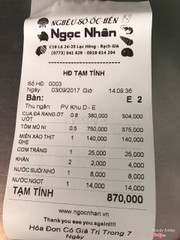 8.4Ngon tuyệt!Đi học xa nhà về lần nào cũng phải cùng gia đình, bạn bè đi ăn ở Ngọc Nhân. Quán rộng rãi, thoáng mát, phục vụ tốt mà thức ăn lại ngon. Hải sản tương đối tươi, các món khá đa dạng có mấy loại lạ hoắc luôn :3 Thỉnh thoảng có thể thử mấy loại đó còn bình thường thì mình hay gọi món nghêu hấp xả, ốc len xào dừa, ốc cà na xào bơ tỏi, cháo hào.... Giá cả cũng tương đối vừa phải, với quán lớn mà giá cả như thế thì cũng chấp nhận được. Nói chung thì sẽ giới thiệu cho nhiều bạn bè về quán khi họ đến Rạch Giá tham quan :) ...View more