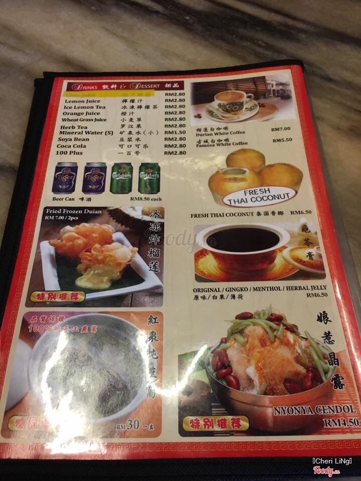 7.0Famosa Chicken Rice BallQuán tầm 5-6 giò chiều là đóng cửa rồi nên tốt nhất nên ghé ăn trưa. Braised egg 1.5RM 1 quả trứng kho : ăn không khác vị ở Việt Nam lắm đâu. Oyster Sauce Towfu 10RM : đậu hũ non, sốt thêm dầu hào, ăn đậu nhạt, sốt mặn nên thành ra vừa. Fish Ball Soup 10RM : cá viên này khá to, không có nhân gì, đơn thuần là cá viên thôi. Green Vegetable 10RM : rau cải xào, bao mặn luôn. Gọi để ăn cho có rau mà mặn quá, không ăn nhiều nổi. Rice ball 2RM 1 viên, bé tí thôi à, ăn không ngion,gọi hẳn cơm không mà ăn, ngon - no - mà kinh tế hơn. Steam otak otak 12 RM : kiểu như cá xay nhuyễn, ăn cứ nát nát, vị mặn, không ngon lắm. Không nên thử ...Xem thêm