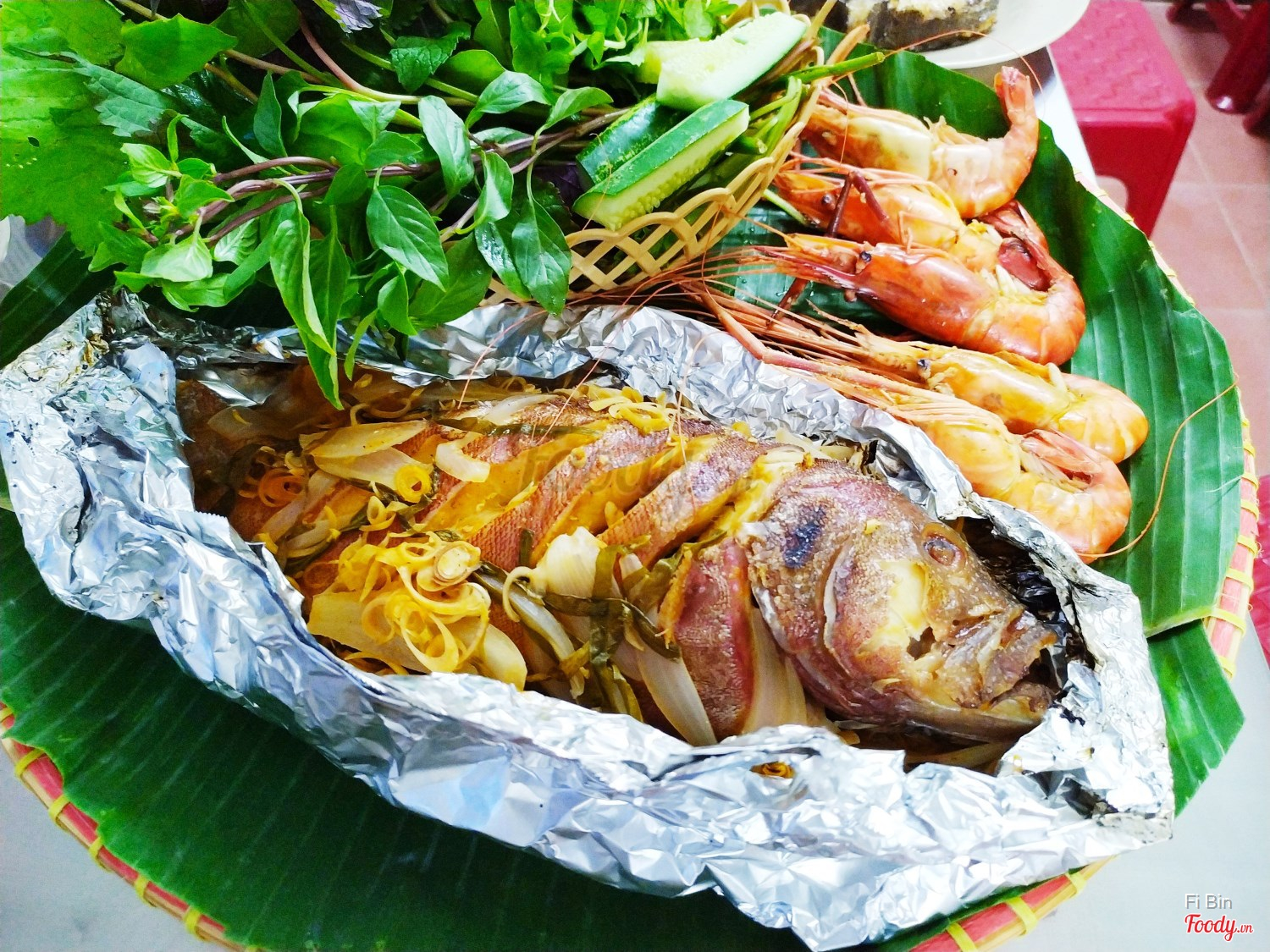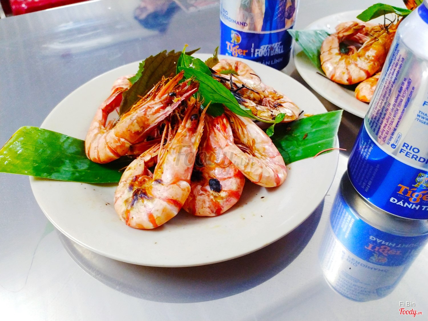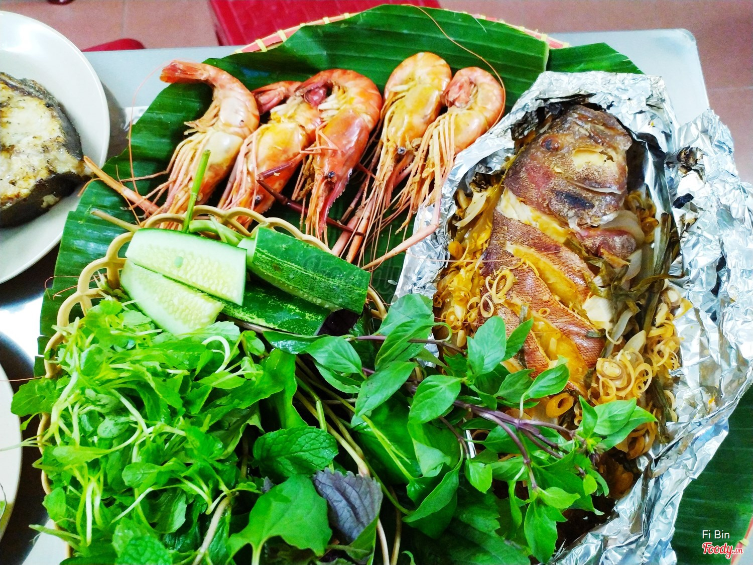 Tôm càng xanh hấp bia sả + cá nướng