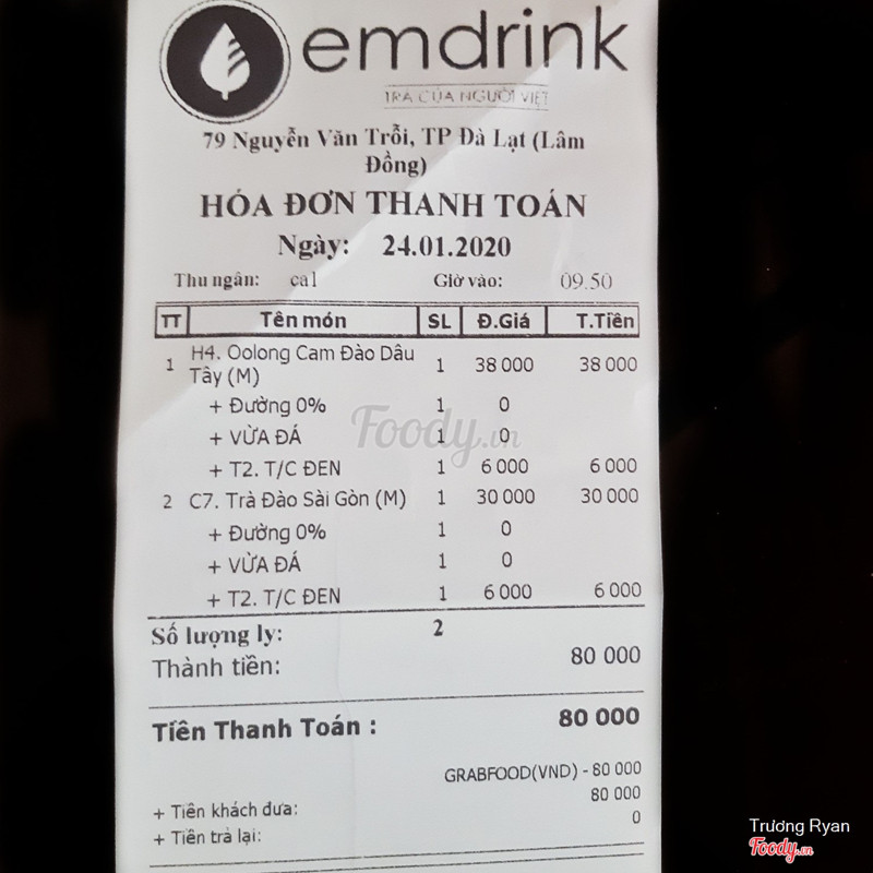 9.4Chắc chắn sẽ ghé lạiThấy quán này trên Facebook và kết cách trang trí quán này nhìn dễ thương. Nếu có dịp ghé lại Đà Lạt chắc chắn sẽ ghé trực tiếp quán. 📋 Nói thật là ưng cái menu quán quá trời luôn, vừa đa dạng trong các loại nước, cách pha chế (điển hình như có cả Trà đào Sài Gòn và Trà đào Đà Lạt/Gia Lai) vừa có cả đồ ăn vặt. Ở Sài Gòn hay thấy mô hình này ví dụ như ở The Coffee House nhưng Đà Lạt chắc đây là 1 trong những quán hiếm hoi có. Đã vậy có cả trang web đặt giao hàng nữa cũng khá tiện. Tuy nhiên điểm còn bất tiện là phần phí giao hàng không hiển thị ngay trên web mà phải chờ liên hệ báo lại sau. 💲Mức giá ở quán so với những tiệm cùng khung đường đó thì ở mức tầm trung, hoặc có nhỉnh hơn 1 chút thôi chứ không quá cao, hơn nữa với chất lượng này là hợp lý. 🥤 Quán sử dụng ly giấy nhìn dễ thương ghê (dù có cảm giác hơi Trung Thu). Tuy nhiên điểm trừ là nắp ép nhựa đóng không kĩ nên lúc giao bị đổ ra 1 phần. 👥 Nhân viên quán cũng là 1 điểm cộng khá tốt cho quán khi bạn nhân viên gọi điện để xác nhận đơn hàng. Ấn tượng tạo ra là sự cẩn thận và lịch sự. Lần mua thứ 2 là order qua fanpage, chắc do dịp Tết nên trả lời hơi chậm chút nhưng cách các bạn hỗ trợ cũng khá ok, bạn giao hàng cũng lịch sự nữa. -----Drink------ 🍹Olong cam đào dây tây: đây là 1 món phù hợp cho ai không thích quá ngọt mà dịu nhẹ vị trà và trái cây tự nhiên. Thêm nữa là mình gọi không đường nên vị trà rõ hơn, chỉ thoang thoảng nhẹ nhưng vẫn cảm giác được, kết hợp với vị ngọt vủa trái cây tự nhiên, uống thanh mát ưng nè. 🍹Trà đào Sài Gòn: theo quán nói thì trà đào Sài Gòn đậm vị trà và ít ngọt hơn so với trà đào Đà Lạt mà đúng là vậy thật. Độ ngọt thanh kết hợp với vị trà thoang thoảng uống rất dễ chịu. Phải công nhận đây là 1 trong rất ít quán pha chế trà đào hợp khẩu vị mình ở Đà Lạt. Ly có 2 miếng đào khá mỏng với không được giòn nhưng bù lại vị đào ngon. 🍹Trà lục an Emdrink: trà này nếm rõ độ đắng và đậm đặc trưng của trà nè, nhưng vị đắng rất dễ chịu chứ không hề gắt, uống rất ưng, đã vậy còn có độ thơm và ngọt rất dịu nhẹ nữa. Uống xong để loại chút ngọt nhẹ trong hậu vị cũng dễ chịu. Loại này có sẵn cả kem cheese nữa, size M nên kem không nhiều lắm, đặc vừa theo kiểu bông mịn, ưng nhất là độ mặn và béo rất vừa phải, đủ để gây nghiện mà không bị quá. 🍹Trà xanh đào: trà này mình gọi không đường thì thấy vừa, vẫn có chút ngọt của vị đào nhưng vẫn giữ được độ đậm và chút chát của trà xanh. ------Topping------- 🍮 Trân châu đen viên to vừa, nhạt nhưng để ý kĩ thì vẫn có chút vị đường nhẹ, ưng nhất là độ dai dai và cứng vừa tới không bị mềm hay dẻo quá. 🍮 Trân châu đường đen: loại này có vẻ viên nhỏ hơn trân châu đen 1 chút, độ dai và cứng vẫn vừa miệng, chỉ là ngọt, đậm vị và có chút đắng của đường hơn. ...Xem thêm