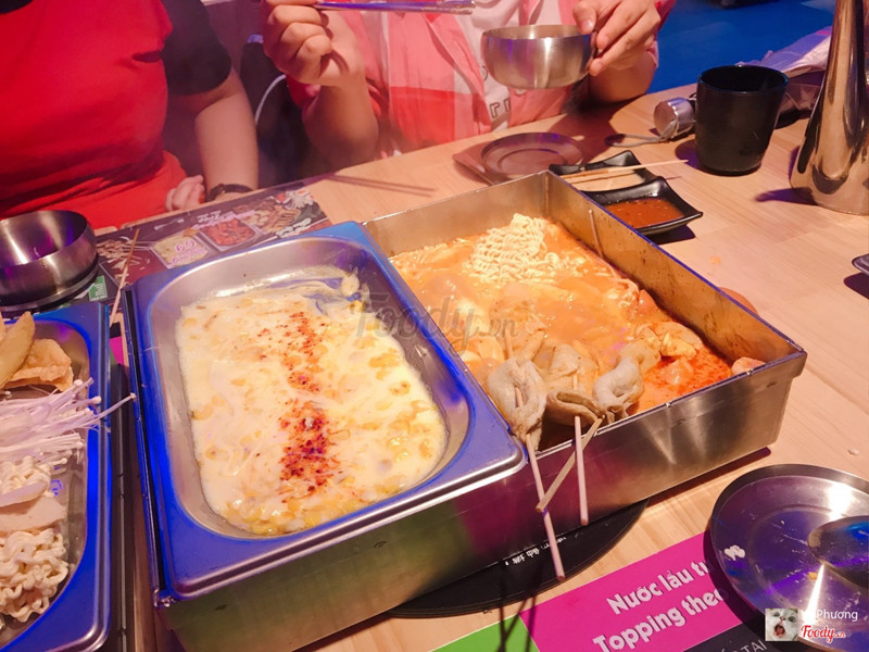 10Quán nhậu Hàn Quốc thời thượng bước ra từ bộ phim Itaewon ClassQuán này phục vụ buffet tokbokki, topping đa dạng mà lại còn tươi roi rói (mình mê nhứt loại tok khoai lang ở đây). Món nhắm ăn kèm phong phú, mê lắm chân gà sốt cayyy, uống chung với soju quá đã. Gía vé: 139 ngàn ĐÃ VAT (trẻ em chỉ 59k thôi mọi người) Đầu tiên các bạn đưỡ FREE 1 khay bánh gạo xào cay cực kì ngon trong lúc đợi lẩu sôi. Highly reccomend mọi người gọi thêm khay phômai để quấn với topping ăn kèm nhé! Chuẩn Hàn luôn ah~ ...Xem thêm