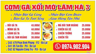 8.4Lâm Hà - Cơm Gà Xối Mỡ-Trong khoảng thời gian "lang thang" tại Đà Lạt thì đây là nơi mình dừng lại ăn trưa - tối. Ăn cơm cho chắc bụng ấy mà. -Vị trí của quán gần chỗ mình ở nên cũng khá dễ tìm. -Cơm gà thơm ngon. Quán có đãi mỗi khách 1 ly nước ngọt. Rất thú vị tại chỗ mình không ai bán vậy hết. Nếu bạn muốn có nước ngọt phải bỏ tiền túi ra mua. -Các bạn nhân viên phục vụ lẫn chú chủ quán đều rất thân thiên. -Quán cơm nên không gian ổn, có thể phục vụ được nhiều khách. Quán có nhiều chi nhánh nên nếu quán hết chỗ bạn có thể ghé các chi nhánh khác của quán xem sao. -Cơm ngon và giá khá rẻ. ...Xem thêm