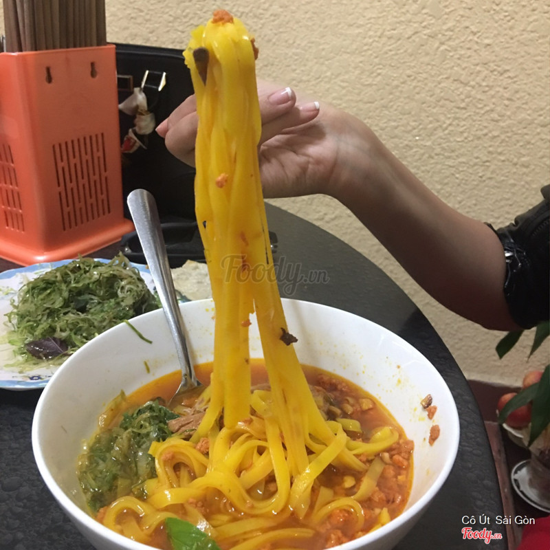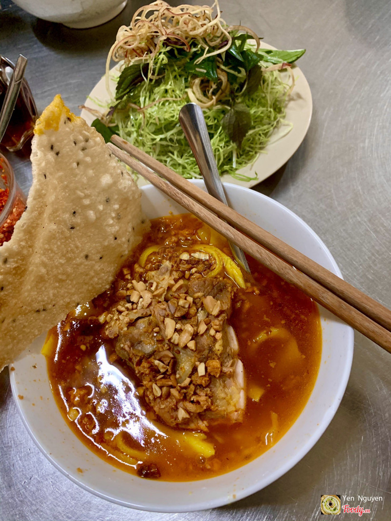 Người nhà mình dẫn đi ăn, nói rằng quán này có từ rất lâu, mở cửa từ trưa cho tới chiều là hết. Nằm trong một con đường hẻm nhỏ, ngôi nhà nhiều tầng có bề ngang cũng vừa vừa, mà khách đông lắm luôn, khách du lịch biết đến ăn cũng nhiều. Mì Quảng ở đây đúng chất kiểu Đà Lạt, chủ yếu là sườn non heo và móng giò. Nước lèo nấu có màu vàng ươm khá béo. Sườn non heo ninh mềm, thịt ăn thơm lắm và ăn cứ như thịt hộp. Cọng mì Quảng cũng mềm béo của bột gạo nguyên chất. Nói chung ăn vừa miệng và ngon, mình rất thích. Rau tươi rửa sạch sẽ, Chanh ớt đầy đủ tươi xanh. ...Xem thêm