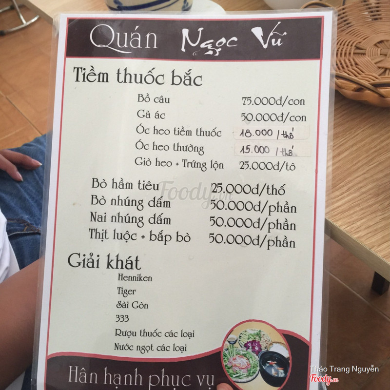 8.8Quán Ăn Ngọc VũMình có dịp đến Bảo Lộc vô tình đi ngang qua lúc quán mới mở đc vài ngày, cực kì bất ngờ khi thấy menu quán...khá rẻ. Ăn thử một số món ngon, ngọt cực kì.. Ăn xong phải mua thêm 4 phần mang về ăn tiếp đỡ giền. Nói chung dịp sau đến Bảo Lộc sẽ ghé quán nữa và ghé dài dài. Chú chủ quán cực hiền và dễ thương, cảm ơn rối rít. Các bạn nên thử, sẽ không hối hận đâu... Mãi ăn quá không chụp món ăn đc, chụp tạm menu cho mọi người tham khảo vậy 😂😂👌🏻👌🏻 ...Xem thêm