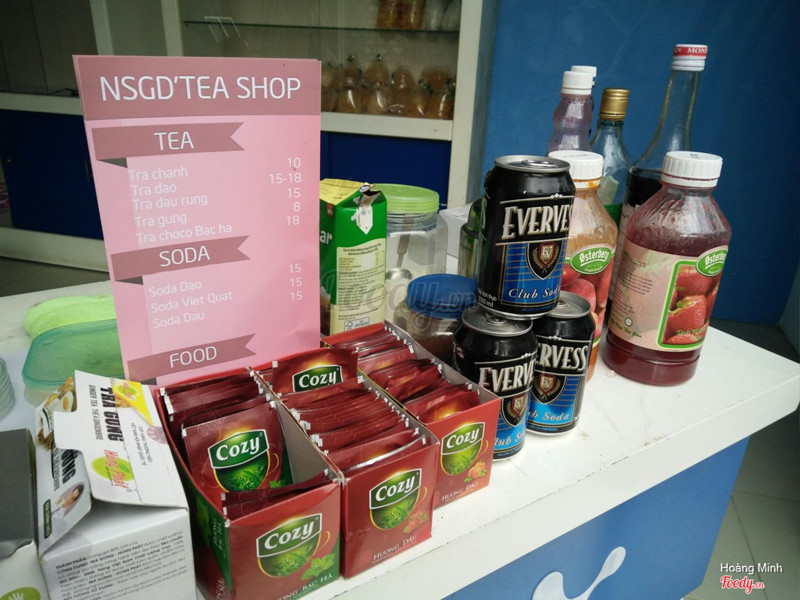 8.2NSGĐ Tea ShopĐây là một quầy nước mới mở trong trường Đại học Đà Lạt do các bạn sinh viên bán luôn. Mặc dù do sinh viên bán nhưng nước ngon lắm nha, sạch sẽ và hạp dẫn lắm, mình uống ở đây mấy lần thấy món nào cũng ngon, mấy bạn lại thân thiện nữa. À, ở đây có món trà cho co bạc hà rất độc đáo không ở đâu có hết í. Giá của mỗi ly nước từ 10 đến 18 nghìn. Điểm trừ của quán là do bán trong trường nên thỉnh thoảng mấy bạn ấy bị hết đá không đi lấy được là hết bán luôn. Mong mấy vạn chuẩn bị kỹ hơn nha.. ...Xem thêm