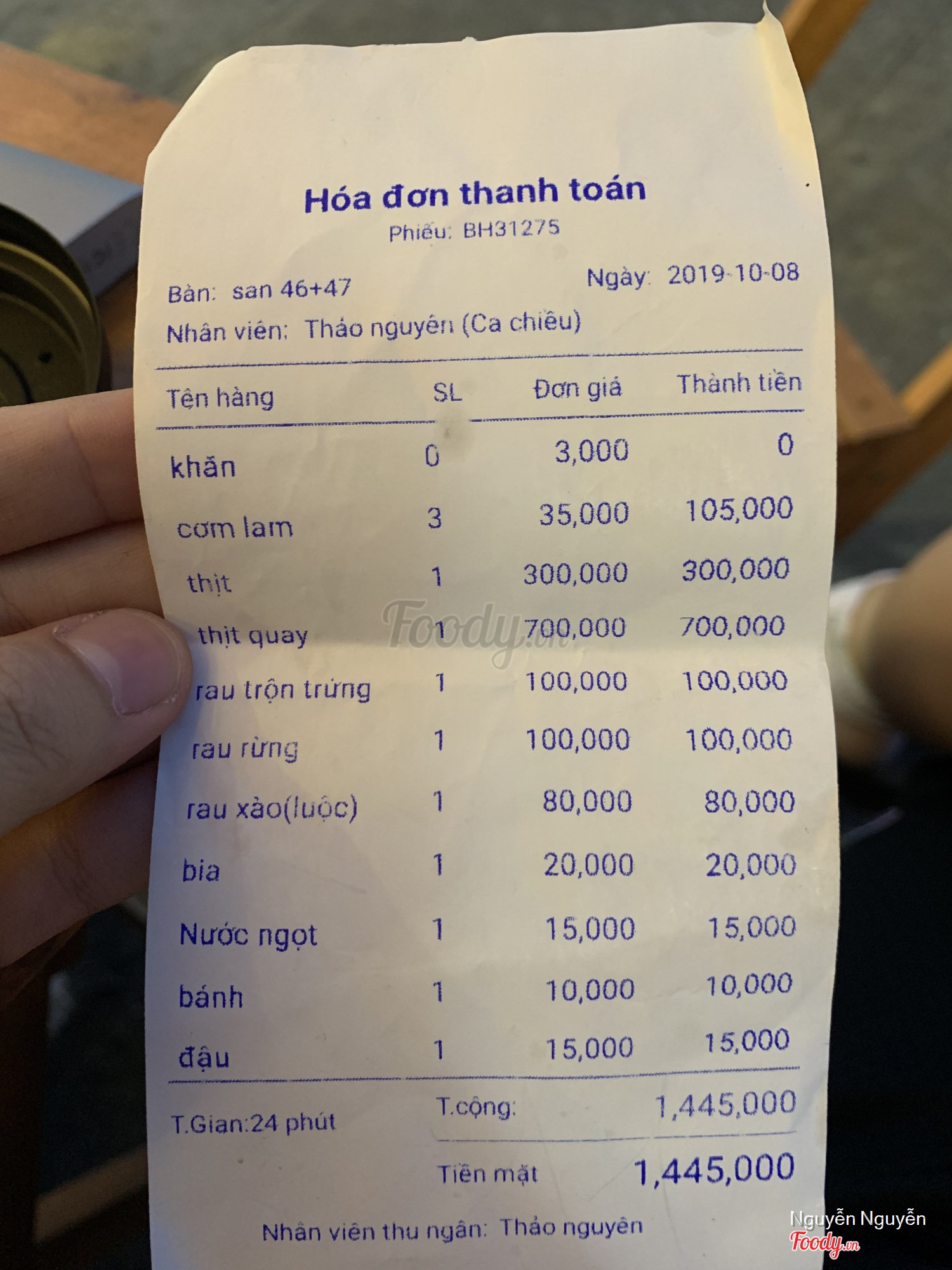 Ghi chú đặt bàn