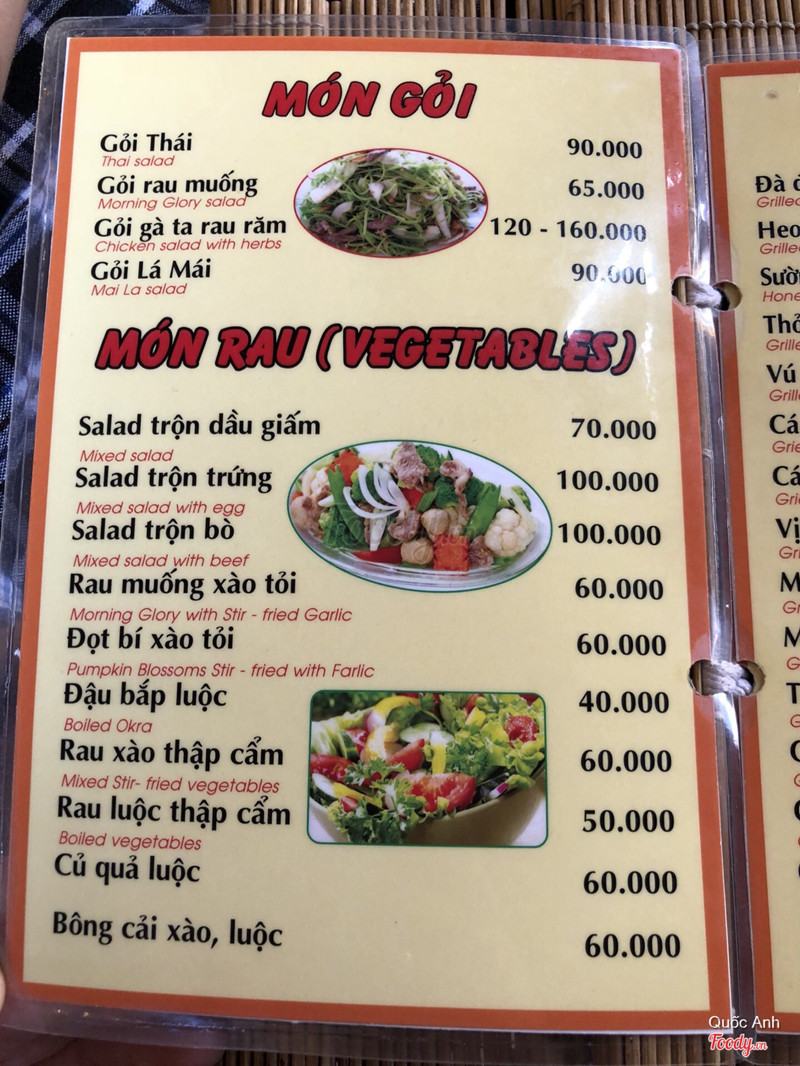 9.4Các món nướng rất ngonTrời mưa và lạnh thì ăn món nướng là nhất Mình ghé quán vào một ngày mưa lâm râm và lạn. Quán nằm trong 1 con hẻm nhỏ. Trước quán có 1 cây hồng đang ra trái rất nhiều và giàn hoa rất xinh Mình gọi 1 dĩa thịt thỏ nướng và sườn heo nướng thịt thỏ thì được nướng tại bàn bằng 1 bếp lò than nhỏ, trời lạnh nên vừa nướng vừa ăn bên lò than nhỏ rất tuyệt các bạn ạ sườn nướng thì được làm chín sẵn sau đó bạn chỉ cần đem hơ nóng lại trên than và thưởng thức thôi Gia vị của các món nướng được ướp rất ngon vừa vừa miệng Mình gọi thêm 1 phần salad, salad rất tươi và được trộn rất ngon Có dịp du lịch ĐL chắc chắn mình sẽ ghé lại quán này lần nữa :) ...Xem thêm