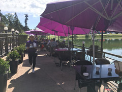 chỗ ngồi khá mát nhờ có dù che