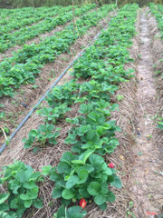 vườn dâu rải rơm nên đi lại sạch sẽ lắm, nếu dơ thì có thể lên nhà rửa chân