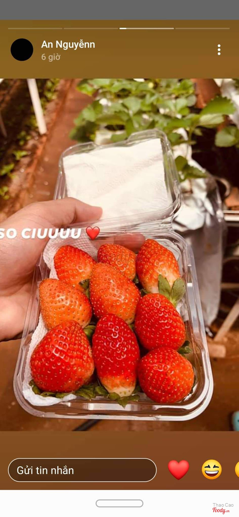 7.2Món quà từ Đà Lạt!Mình chưa đc đến Đà Lạt baoh nhưng có cơ hội thưởng thức rất nhiều sản vật của vùng đất này! Ví dụ như Dâu là 1 đặc sản ở Đà Lạt 🍓 - Lên mạng tìm hiểu thì Vườn dâu thời thìn này (là Vườn dâu Nhật) 🤔 - Những hạt dâu đc mua mang về làm quà biếu đc đựng trong hộp catong cứng cáp, nhìn rất xịn. Mà từng quả dâu đều tăm tắp k quả nào bị to hay nhỏ cả. Chắc có lẽ công nghệ Nhật cũng hiện đại nên dâu mới đều đẹp như vậy đc. Khách quan mà nói thì Dâu này k to quả dâu hàn quốc, có vị hơi chua chua chứ k ngọt. Nhưng ăn chấm muối ớt rất ok, nên mình sẽ ủng hộ hàng Việt !!! 🍓🍓🍓🍓 ...Xem thêm