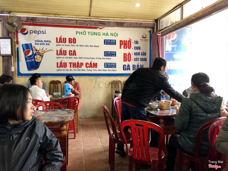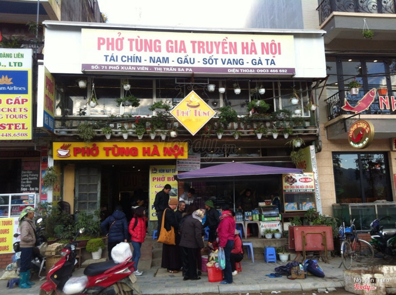 7.8Tùng Hà Nội - Phở Gia TruyềnPHỞ TÙNG SAPA Quán này là quán phở nổi tiếng là ngon nhất ở Sapa luôn ấy. Một bát phở 45k khá đầy đặn. Nước dùng thơm, béo, ngọt, sợi phở to ăn cùng với thịt bò ngon cực. Nấu chuẩn vị giống phở Hà Nội phết. Trời Sapa lạnh lạnh húp đc bát phở ngon ấm cả người. ...Xem thêm