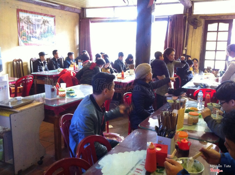4.4ăn sáng sapaPhở tùng ở đây thì nổi tiếng lắm nhé hỏi taxi nào hầu như ai cũng biết. Bác chủ quán là người Hà nội lên đây mở quán nên ngon thật. Quán cũng sạch sẽ nhưng mà cuối tuần ở đây thì đông dã man luôn. Mà hầu như ai lên sapa cũng ghé qua đây ăn thứ. Phở có phở gà bản, phở bò, bò sốt vang.... Giá dao động từ 40-50k. Buổi tối thì có thêm cả lẩu gà bản lẩu bò nữa. Trước quán có mấy người bán hàng dong nên mình mua ăn thử xôi ngũ sắc luôn. Hạt xôi hơi cứng nhưng ăn với vừng người ta tự làm thì thấy lạ mà ngon. Nên thử ...Xem thêm