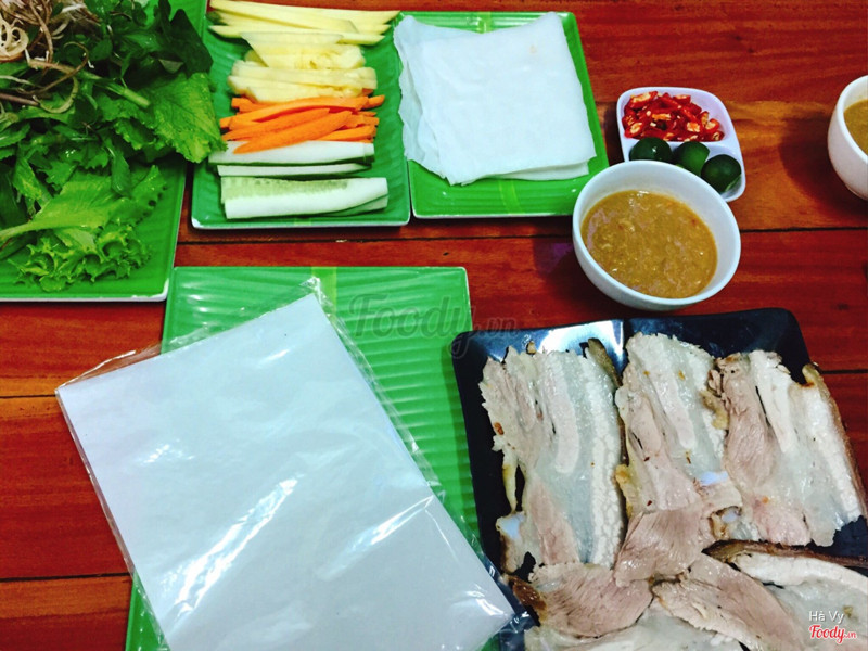 8.825000-30000# về bánh tráng : Đánh giá chung là ngon, thịt quay bì giòn rụm, ko nhiều mỡ ( ba chỉ chuẩn ) rau tươi, đa dạng ... đồ cuốn kèm cũng nhiều, xin thêm thoải mái. Trà đá tự phục vụ. Có sữa ngô , đậu nàh 6k/ cốc to vật vã. # về quán ăn : Quán có 2 cơ sở nằm đối diện nhau, mình ăn ở cơ sở 2 là 106 Ngư hải. Quán rộng rãi, thoáng mát, bố cục rất bắt mắt và view cực kỳ đẹp :) # về phục vụ : Phục vụ cực nhanh, gọi đồ xong 1 phút sau là tất cả đã đầy đủ trên bàn. Gọi thêm rau chỉ cần ới phát là nhân viên đem ra. Theo đánh giá của mình thì ở đây chất lượng phục hơn đứt các quán bánh tráng khác ở Vinh. # về giá cả : Giá mềm hơn so với các quán bánh tráng khác, thịt luộc 30k, thịt quay 40k , bún mắm nêm 25k. Hai người đi ăn tầm 60-70k là no căng. # về đồ ăn khác : Menu khá đa dạng, ngoài bánh tráng cuốn thịt còn có thêm cuốn ram tôm đất. Trông 1 mẹt đầy đặn cũng chỉ 40k. Ăn vừa thơm giòn , lạ miệng. Và các đồ ăn vặt khác giá tầm 10-20k. ...Xem thêm