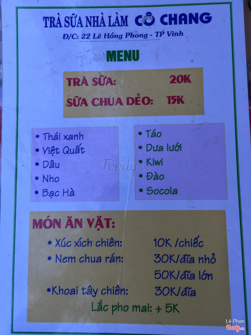 9.4Cô Chang - Trà Sữa Nhà Làmquán này sữa chua dẻo ngon ngon.. của nhà làm nên thấy an tâm. chị bán hàng lại dễ tính nữa. nghe bảo chuẩn bị chuyển sang nguyễn văn cừ. ...Xem thêm