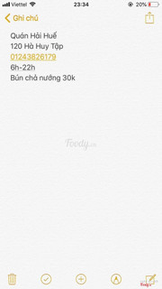 7.2Hải Huế - Bún Chả NướngTrời mưa lạnh như này tự nhiên thèm chả nướng kinh khủng, mùi thịt nướng thơm nức cả 1 góc phố, lâu lắm mới ngồi chờ nhân viên quạt ko ngừng nghỉ để miếng thịt cháy sém đều. Có điều 1 vỉ hơi ít thịt, có khi phải gọi thêm thịt ăn mới đủ ...Xem thêm