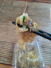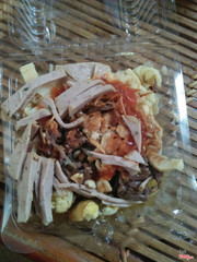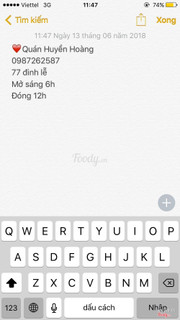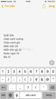 7.0Huyền Hoàng - Cháo Canh Sườn Giò & Miến Trộn Gà ChọiNghe nói món đặc trưng của quán là miến trộn gà, nhưng mà hôm qua gia đình chủ xem World cup không chuẩn bị gà kịp nên tớ mua miến trộn thường, gồm có bò, giò, trứng cút, măng và lạc, hành khô. Trông cái hộp bé bé xinh xinh mà nhiều phết, ăn no căng mà chỉ có 25k, kèm 1 hộp nước hầm xương. Miến ngon, mềm vừa phải, hương vị đậm đà. Phần ngon nhất là măng muối, vừa chua vừa cay, kích thích vị giác. Nước dùng thơm mùi xương, là nước dùng cháo canh ấy, nhưng mà nhạt lắm, phải cho thêm tí xúp mới ngon. ...View more