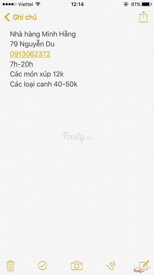 Ghi chú đặt bàn