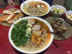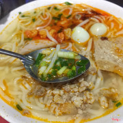 7.4Quán Bà Khoa - Cháo Canh, Bún Bò Hầm & MiếnNgày đã lạnh tê tái rồi, đêm đến lại tái tê hơn, 2 đứa hẹn nhau sau giờ làm cũng vội tạt vào quán làm bát cháo canh bất kỳ dọc đường. Hàng này bán vỉa hè ngay trước quán bún mắm nêm bà Mai. Bát cháo canh to vật vã, thập cẩm, thịt băm xào, chả, xương sườn nhiều bao la. Nước dùng thanh, hơi nhạt (phải chăng do mình ăn mặn hơn bt chút chút) 2 đứa ăn đc hết tô mà mừng vui vỡ oà, nó to, nó nhiều lắm luôn. Đã ăn cháo canh thì cũng đừng quên gọi thêm đĩa bánh mỳ rán ăn kèm, chấm ngập từng miếng bánh nó mới đã nha. Bọn mình có gọi thêm chả cuốn ăn thử trong lúc chờ cháo canh, công nhận ngon, nhân nhiều thịt thấy thật xứng đáng. 📍Bà Khoa - 135 Cao Xuân Huy 💵5K - 30K ...Xem thêm