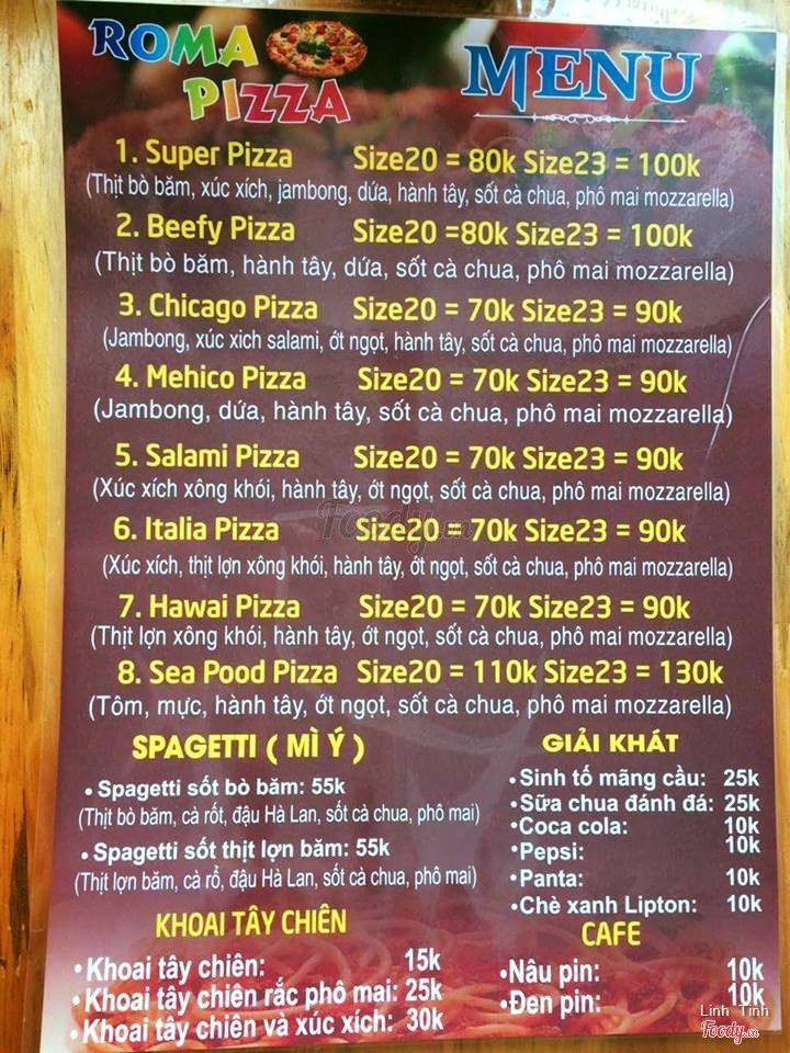 8.4Roma PizzaKhuyên mọi người nên thử. Ăn ở đây xong sẽ không muốn ăn chỗ khác nữa. Pizza chú tự làm đế luôn, đế rất mỏng, nhân nhiều, có dứa, ớt chuông đầy đủ. ...Xem thêm