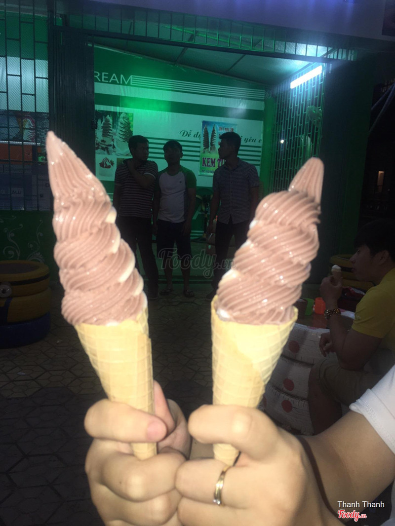 7.2S-Cream - Kem Các LoạiKem dài từng gây sốt trên mọi diễn đàn. Quán này cũng ra đời thời điểm đó :v Quán này chủ yếu ngồi vỉa hè chứ bên trong được tầm 3 bàn là chật rồi. Kem ngắn 1 vị: 10k, 2 vị: 15k. Kem dài 1 vị: 20k, 2 vị: 25k. Theo mình nên ăn kem ngắn là vừa rồi, kem dài đa số mọi người đem ra chỉ kịp chụp ảnh check in xong là đã bị rơi khỏi ăn luôn rồi ))) Trước đây chỉ có vị vani truyền thống với socola, bây giờ có thêm nhiều vị mới nữa rồi sữa dừa mix dưa vàng, vani mix việt quất. Mình thích nhất vị sữa dừa thơm ngon, béo ngậy, không màu mè. Vì là kem tươi nên mỗi lần máy chỉ chạy được vài cái rồi phải chờ tầm 10p gì đó mới ra được kem mới. Quán còn bán thêm kem que, kem ốc quế khác nữa. ...Xem thêm