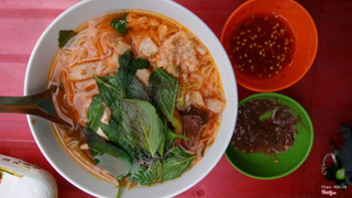 7.425,000 một tôQuán bún nằm ngay góc đường Nguyễn Du, phía dưới chân cầu Nguyễn Trung Trực (phía chợ đêm), bán từ 12h trưa cho đến tối. Quán không có tên nhưng ngay đườn Nguyễn Du nên người ta quen gọi là bún riêu Nguyễn Du hoặc bún riêu nước sâm bông cúc, vì đặc biệt ở đây có bán nước sâm bông cúc rất ngon. Tô bún 25,000 có giò, thị lợn, chả cá Phú Quốc cắt mỏng chứ không phải viên tròn, rau muống và giá đỗ. Buổi chiều mình ghé đây ăn, quán đông lắm, chắc có hơn 20 khách. Bàn ghế tận dụng hai bên lề đường và phần hiên ngang của những người ở gần đó. Bình dân mà đông khách. Mùi vị bình thường, đối với mình là hơi nhạt. Mình thích nước sâm hơn là thích ghé ở đây để ăn bún. ...Xem thêm
