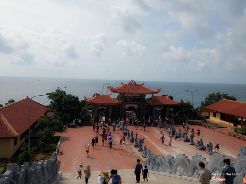 10Chùa Hộ QuốcChùa Hộ Quốc tọa lạc ở một vị trí khá cao và là ngôi chùa có vị thế đẹp nhất Phú Quốc, phía trước là biển, phía sau là núi. Chùa đang trong quá trình xây dựng và mở rộng, nhưng tổng thể nhìn vào chùa có quy mô rất và được đầu tư hoành tráng. Kiến trúc của chùa cũng rất được chăm chút tỉ mĩ tạo nên một kiệt tác tuyệt vời mà bạn không thể bỏ qua khi đên Phú Quốc. Tuy ở vị trí khá cao nhưng đường lên chùa được đổ bê tông nên rất dễ đi, ô tô 50 chổ có thể vào vô tư. Phía bên chùa có sân đậu xe dành cả ô tô và xe máy. Phía trước là cả một biển trời mênh mông, biển rất sạch và yên bình. Phía sau là cả một dãy núi non hùng vĩ. Trong cái khung cảnh ấy là âm thanh của những bản kinh phật, hương thơm của mùi trầm tạo nên một khung cảnh an bình, tâm hồn cảm thấy nhẹ nhàng đến lạ. Có dịp đến Phú Quốc nhất định phải ghé thăm chùa Hộ Quốc nhé, đảm bảo bạn sẽ mê tít chốn này. ...Xem thêm