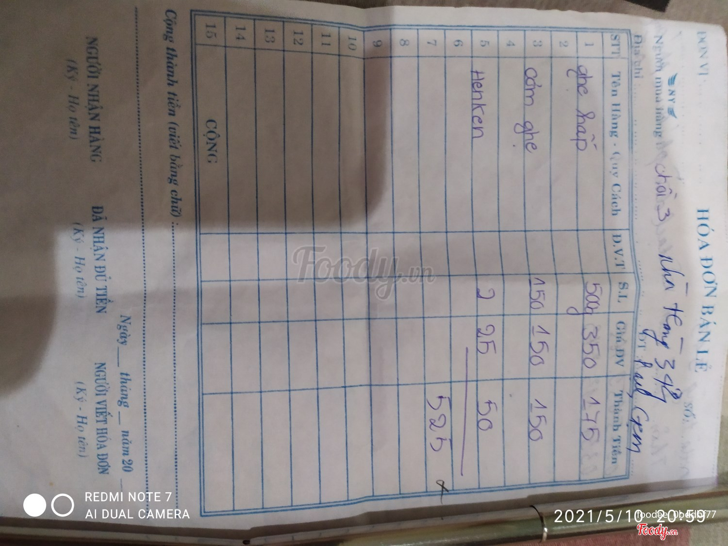 Ghi chú đặt bàn