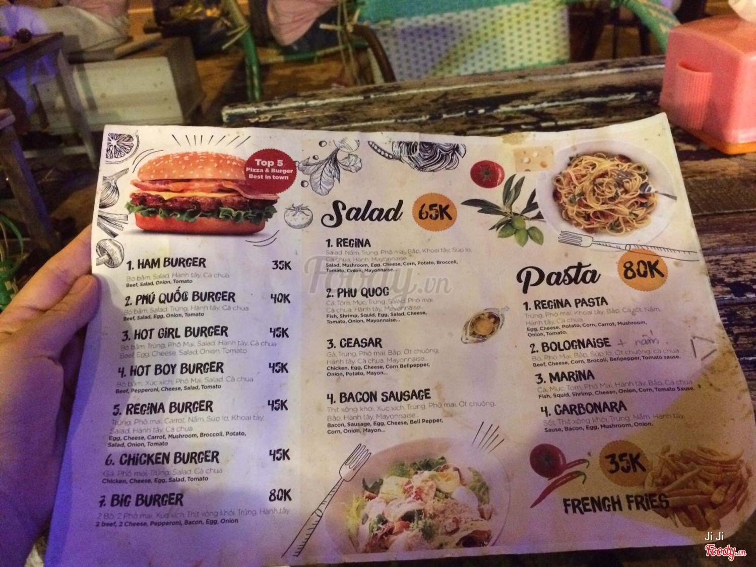 Burger, Salad, Pasta