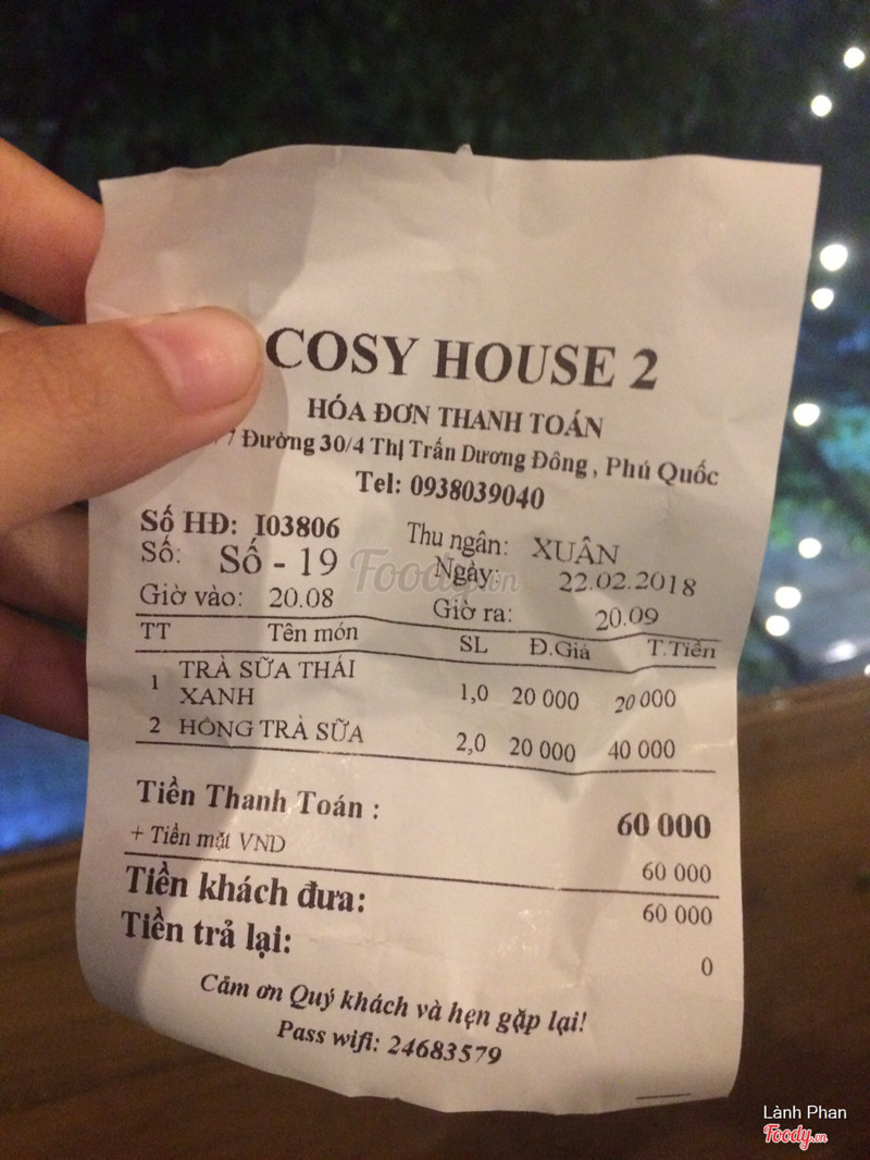 7.4Tabica - Cosy House 2Quán khá là đông, nhưng mà nhân viên rất thân thiện. Hôm đó trời mưa nên mọi người tập trung hết trên lầu 2 ngồi, mình thì bon chen lên lầu 3 (lúc đó hết mưa ời), sàn ướt nhẹp nhưng ngồi ghế mà nên vẫn ngồi lì trên đó :)) (lầu 2 ngồi ghế lẫn ngồi dưới đất đều có nhé) Order trà sữa thường thôi, giá khá là rẻ, nước uống cũng được thôi, không quá ngon không quá tệ ^^ À leo lên tầng 3 ngồi ngắm thế giới di động đối diện cũng được, đùa chứ cái cây gắn đèn lên hình đẹp lắm ý, bên ngoài nhìn cũng thích, địa điểm deep lý tưởng Sẽ quay lại trong tương lai, biết đâu lại gặp người quen ở đó, vì quán đông mà, Phú Quốc nhỏ nữa, thặt thú vị ^^ ...View more