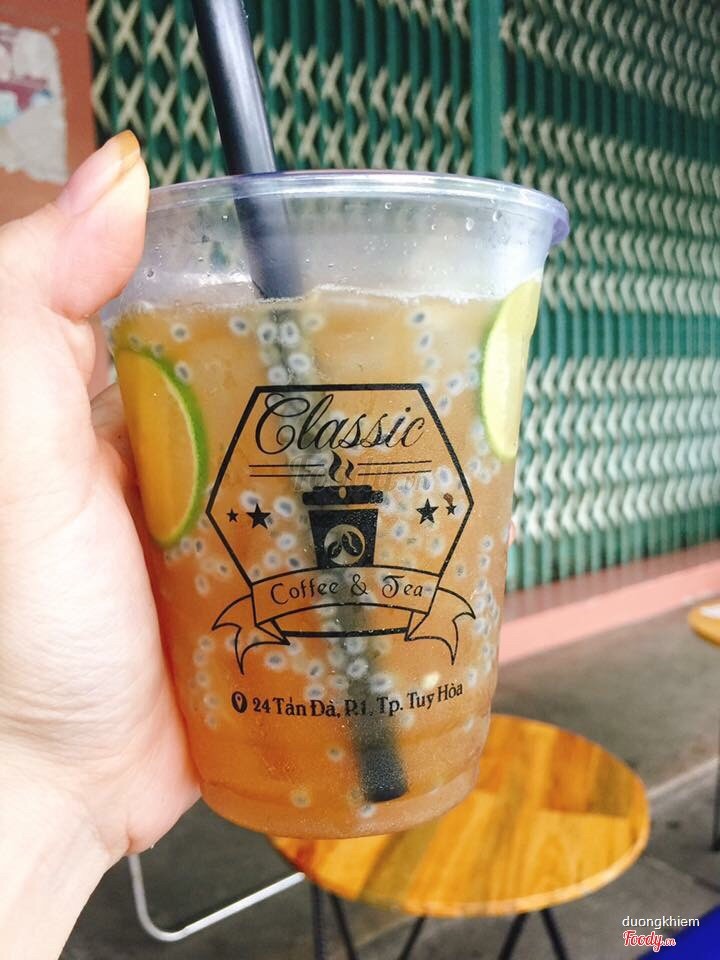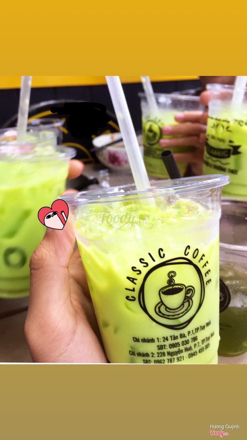 7.4Classic Cafe - Nguyễn HuệNay tuy hoà có nhiều quán bán trà giảm cân ghê . Và vì thân hình cũng đang bị thừa mỡ nên mình ghé đây để kêu một ly uống thử có ốm hơn không :)) . Vào quán bạn hãy kêu cjo e một ly trà giảm cân , thích mix thêm hạt chia hoặc bất cứ thứ gì bạn thích . Mình thì thêm hạt chia cho heathy , bạn mình chọn trân châu củ năng . Vị của món này hơi chua chua và chát nhẹ . Kiểu nước trà xanh nhưng đậm vị hơn chút . Ngọt vừa nên không sợ béo . Nói chung uống cũng ok . ...Xem thêm
