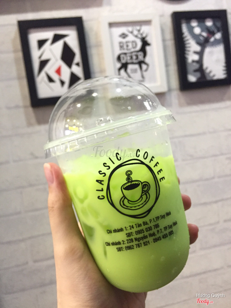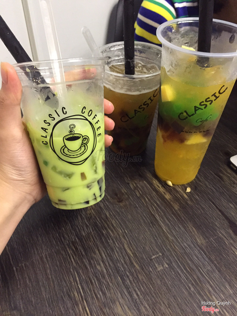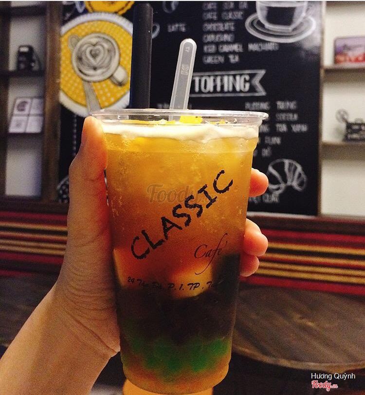 7.6Classic Cafe - Nguyễn HuệClassic coffee có 2 cơ sở ở 24 Tản Đà và 228 Nguyễn Huệ nha. Không gian ở Tản Đà là vỉa hè, thoáng mát hơn. Còn ở Nguyễn Huệ là phòng máy lạnh, view đẹp hợp cho các bạn sống ảo. Nói về các loại trà thì quán có trà hoa quả và trà đào khá ngon. Đá xay cũng ngon lắm, còn về trà sữa thì mình thích nhất là trà sữa lài. Trong ảnh là trà sữa lài nhé. Hình thức thì không được ngon mắt, màu hơi xấu nhưng mùi lại rất thơm và lúc uống thơm rõ mùi trà xanh với vị sữa nhẹ nhẹ ...Xem thêm