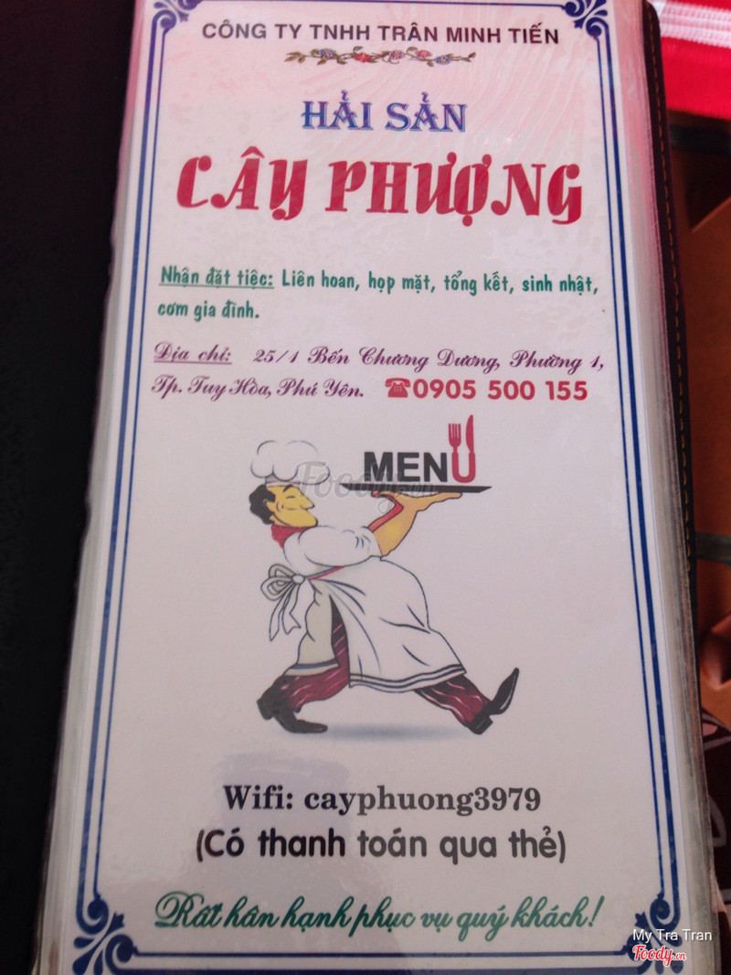 6.4Hải Sản Cây PhượngNằm ngay đầu bờ kè đi vào một đoạn. Khá dễ tìm vì quán cũng to. Không gian quán cũng rộng rãi, thoáng đãng. Đi cuối tháng 9 nên hải sản ở quán không còn phong phú. Món ăn: chế biến không có gì đặc sắc. Nướng tu hài và sò dương đều đơn giản quán. Nước lẩu hải sản siêu cay, nhiều hạt ớt (không tốt). Cá trong lẩu ăn bở, không ngon. Giá khá cao so với các quán khác từng ăn tại Phú Yên và Quy Nhơn. Tu hài 490k/1 kg. Cò mai 60k/1 con không to lắm. Mình ăn ở quán khác to hơn có 40k. Rau lẩu tính khác giá trong menu. Nhân viên hơi thiếu thân thiện. Nói chung nên thử quán khác vẫn hơn. ...Xem thêm