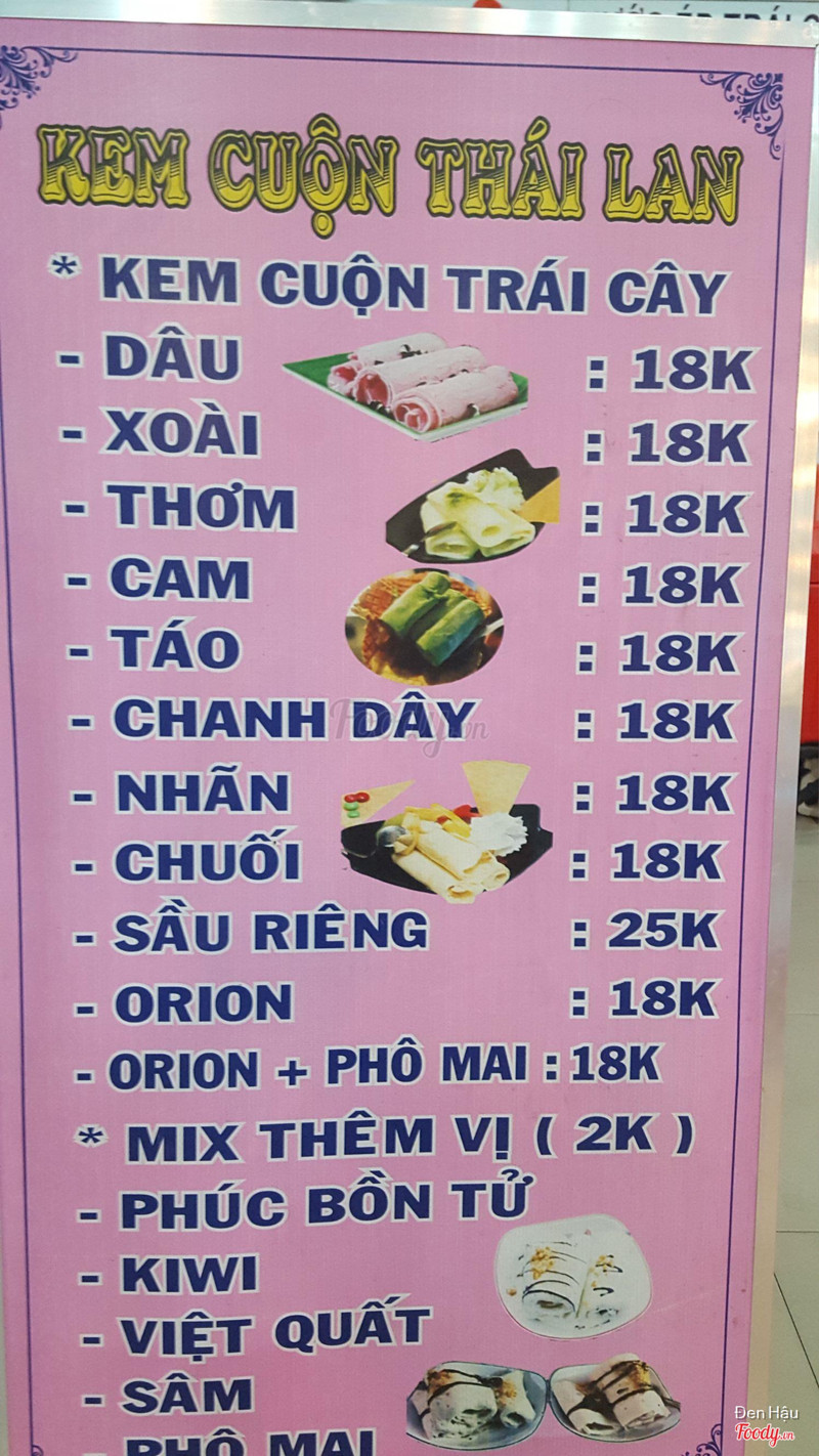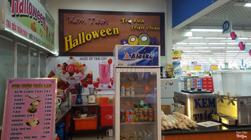 7.2Giá hơi caoquán bán ngay bên trong siêu thị Coopmart nên cũng dễ thấy. diện tích cũng không lớn chừng vài m2, nhân viên cũng chỉ có 1. kem cuộn là 18k cho các loại riêng sầu riêng là 25k, khá đắc so với bên ngoài nên ít người dùng kem cuộn ở đây. ngoài kem cuộn quán còn bán trà sữa, kem tươi, nước trái cây và nước đóng chai các loại. các loại này bán được vì gần khu game. khách đến đây chủ yếu là người đi mua sắm ở siêu thị và các game thủ bên khu game. ...Xem thêm