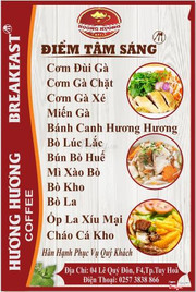 9.6Điểm tâm sáng ở Hương Hương Coffee rất đa dạng và phong phú.Mọi người dừng chân ở thành phố Tuy Hòa, nhớ ghé đến địa chỉ 04 Lê Quý Đôn, Phường 4, Tp Tuy Hòa, để dùng điểm tâm sáng và cafe cùng các loại sinh tố, nước ép, đá xay,.... nhé! Hương Hương sẽ không làm bạn thất vọng về sản phẩm, dịch vụ đâu ạ! Rất mong được phục vụ quý khách. Thực đơn ăn sáng bao gồm: + Cơm Đùi Gà; Cơm Gà Chặt; Cơm Gà Xé; Miến Gà + Bánh Canh Hương Hương + Bò Lúc Lắc; Bò Kho; Bò La; Mì Xào Bò; Bún Bò Huế (bò + giò) + Ốp La Xíu Mại + Cháo Cá Kho ...Xem thêm