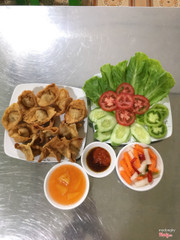 Nước chấm tự làm nè, thêm tỏi ngâm và sa tế tự làm nữa, mình ghiền.