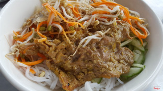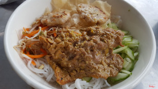 6.0Không ngon, rau không sạchQuán này mới mở thôi, dừng mái ton tạm, nằm đường sau lưng bia tưởng niệm liệt sĩ Hòa Vinh. Quán bán bánh mì là chu yếu, bán thêm bún khô và bánh cuốn nữa. Bún khô có giá 20k, tô sứ nhìn hấp dẫn, bún khô bỏ nem nướng và bò nướng ăn cũng được có điều nhìn thấy thau rau sống là hết muốn ăn, rau cũ rồi, hư gần hết, chắc từ tối hôm qua còn lại mà chủ quán chưa nhặt lại. Lỡ gọi món rồi nên mình bảo không bỏ rau, chỉ bỏ dưa leo thôi. ...Xem thêm