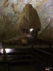 Thạch nhũ tạo thành hình ngôi nhà làng trước cửa có chum nước
