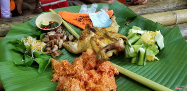 Cái con động vật lông vũ ấy, tui tưởng là tui cạch mặt với nó rồi, nhưng hôm đó tui lại thấy nó ngon lạ lùng, chắc do đi động thiên đường mệt quá nên ăn thấy ngon miệng hẳn. Nó là món gà đồi nướng (300k/con gà nặng cỡ 1kg trước khi nướng). Đi chơi mấy cái suối ở Quảng Bình thì ăn cái con động vật lông vũ này là hợp bài, thấy chỗ nào menu cũng có mặt ẻm, muốn né cũng không được. Chỗ này thuộc kdl Suối Mọoc luôn, là cái nhà rông kế chỗ bán vé á, gọi món trước rồi mới vô suối mọoc, trong lúc mình tham quan thì nhà hàng sẽ làm, hôm mình đi không biết có phải do có mỗi nhà mình không mà khi có đồ ăn là thông báo qua bộ đàm cho anh guide rồi ảnh báo lại cho mình nên lúc ra là đồ ăn còn nóng hổi. Ngồi ăn ở đó là ngồi bệt, trên chiếu, ở trong nhà rông, ăn bốc tay, ngắm ra vài 4,5 chú chó mà cứ lâu lâu mon men chạy lên ngồi nhìn miệng, dễ thương lắm kìa (nhưng không được/ đừng cho chó ăn nhen, sinh tật mốt nó ăn hỗn rồi bị khách la, nhà hàng la nó á) Nếu đi mùa đông thì chỗ ăn này đã lắm, mát mẻ, không cần quạt luôn. Nhưng nghe bạn mình nói hè 40 độ lận, tưởng tượng cảnh vừa ăn vừa chảy mỡ, thiệt chịu không nổi ...Xem thêm