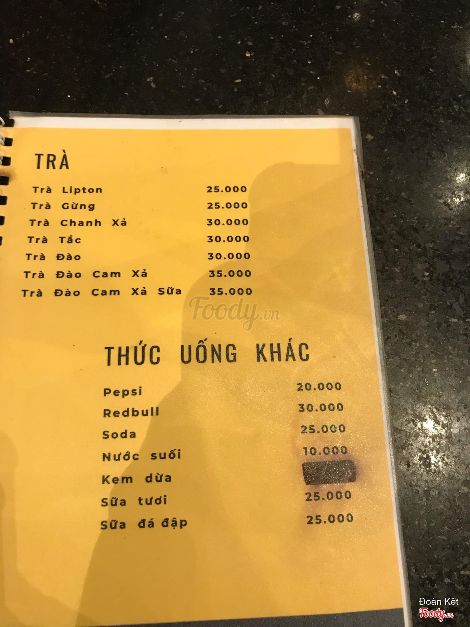 Ghi chú đặt bàn