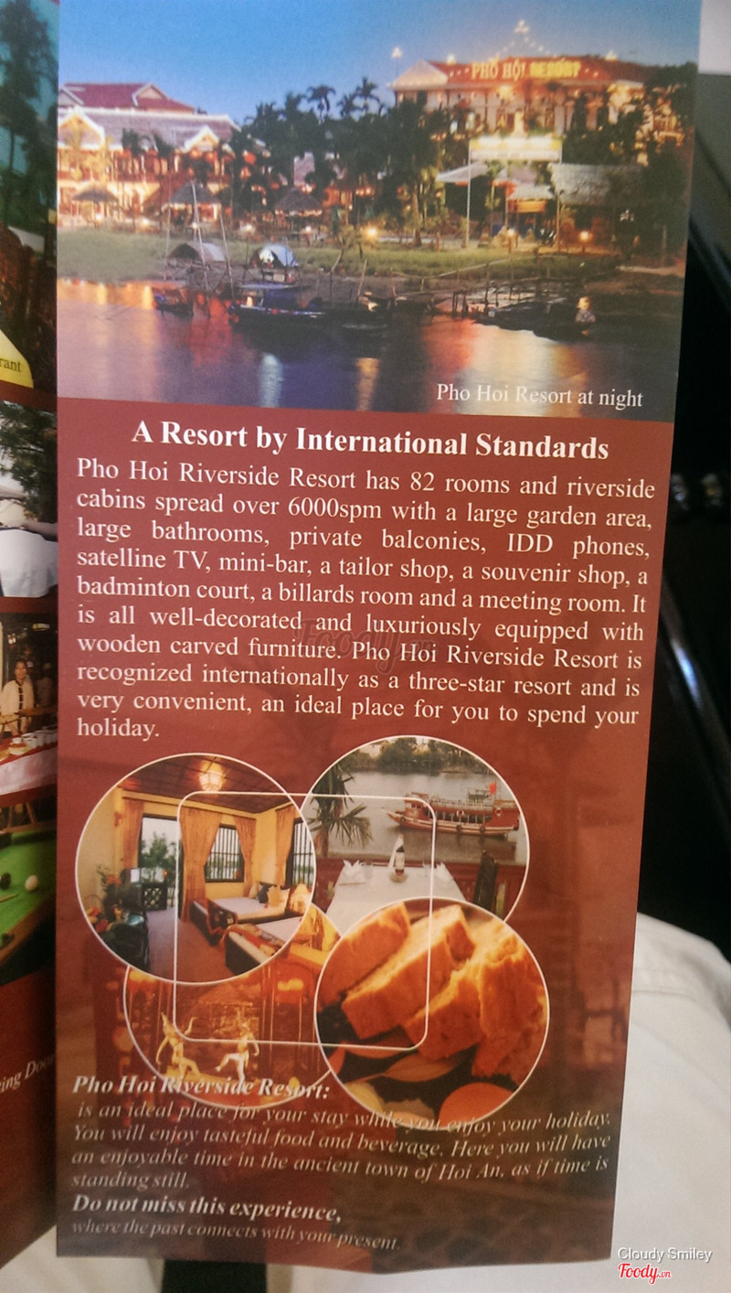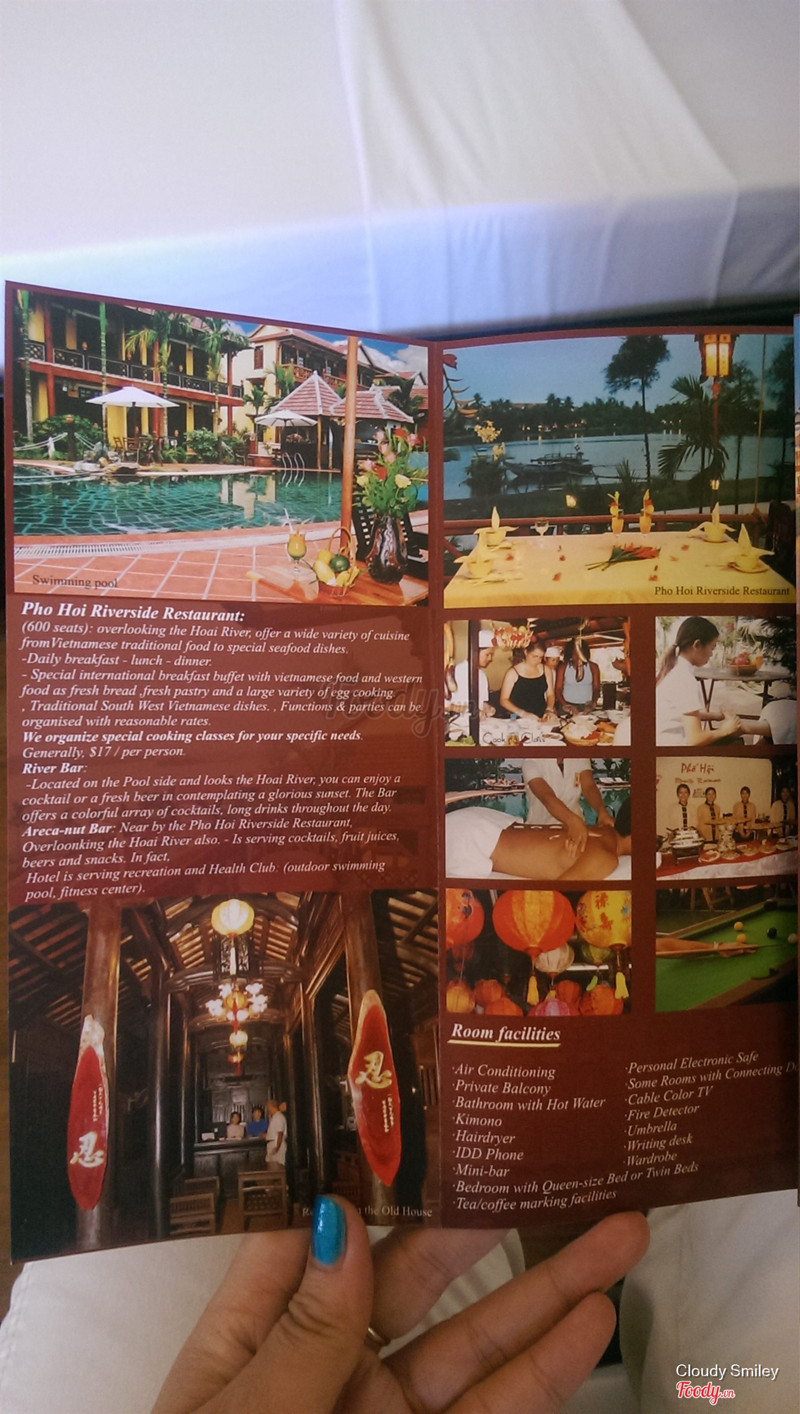 7.6Phố Hội Riverside Hội AnMình đặt ở chổ này vì rất gần với phố cổ. Có 2 khu riêng biệt resort & khách sạn. Có hồ bơi khá đẹp nhìn ra bờ sông. Từ phố cổ đi qua cầu Cẩm Nam vừa xuống cầu là thấy liền. Không gian thoáng, phòng ốc sạch sẽ & rộng rãi, nhân viên rất nhiệt tình, dể thương. Có điều nguồn nước có mùi hơi kì kì, mình cũng chưa rảnh complain với tiếp tân. Ks hơi vắng nên buffet sáng mặc dù mình xuống lúc 7h hơn mà vẫn vắng hoe, ít đồ ăn chắc do ít khách. Phở gà ăn nước dùng ok. ...Xem thêm