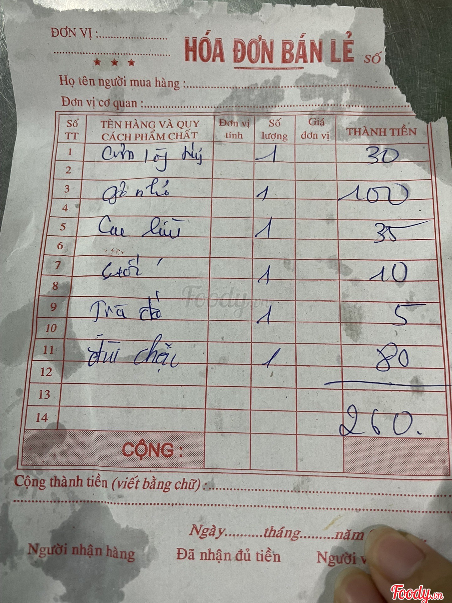 Ghi chú đặt bàn