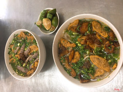 7.6bún mọn hạtMưa gió mát mẻ làm bát bún cay xè, nóng hổi là nhất luôn rồi. đây là quán bún mình hay ăn và thấy hợp miệng nhất. ở quán có thứ gia vị đặc trưng là tôm cay xay nhuyễn, ko thể lẫn với bất cứ chỗ nào khác. Bát bún đầy đặn, ngập nhân nào cá, chả cá, bề bề, tôm, mọc... thêm chút tôm cay cho tròn vị rồi chan 1 vá nước dùng nóng rẫy, ta bảo sao mà nó ngon nhức nhối. cá rán giòn rụm, ko tanh hôi, bề bề chắc thịt tươi ngon, miếng chả cá thái mỏng rán khô ngấm nước dùng vừa dai vừa ngọt điểm thêm chút vị cay nồng và mùi thơm đặc trưng của tôm cay. Bao đã, bao nghiền luôn.Quán tuy hơi xa trung tâm nhưng đông khách lắm, thường thì đến tầm 9h là gần hết đồ rồi, ở đây còn phục vụ các món khác như bún móng giò, lòng dồi luộc, đồ nhậu nên phù hợp với mọi đối tượng. Quán rộng rãi mát mẻ nhưng phục vụ hơi chậm vì cô bán hàng đủng đỉnh lắm, nhiều khi vắng khách mà vẫn phải đợi rõ lâu mới đc bát bún nên hơi sầu ...Xem thêm
