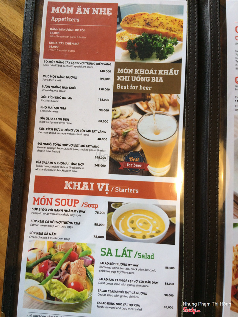 7.6My Way Sport Café & BeerQuán ở bảo tàng có view nhìn ra biển nè ❤️ Không gian sang lắm ấy, từ quầy order đồ nhìn tủ rượu đằng sau đã thấy thích rồi. Có bàn ngồi bên ngoài đẹp, yên tĩnh, có nhiều cây và mái che. Mình thì lên tầng hai ngồi, ở đây có nhiều kiểu bàn ghế khác nhau, và mọi người thường thích bàn hướng ra biển. Về đồ ăn : Mình có gọi set đồ 80k/ người và một số món bánh tặng trong voucher. Quesadillas và Tacos ăn khá lạ miệng.Điểm chung là đều có phần sốt màu xanh phủ lên bánh, một loại thì vỏ mềm tương tự như vỏ bánh crepe và nhân thịt hầm bên trong, một loại vỏ giòn, bên trong có các loại rau, ớt chuông và thịt xắt hạt lựu. Mình ăn chưa quen lắm nên cảm thấy khá ngán. Salad ăn kèm có rau mầm, trộn ngon miệng. Cánh gà chiên ở đây cực hợp với mình. Sốt ngọt, thơm, bám vào phần da gà khá giòn. Thịt gà mềm ẩm ❤️nếu mua 10 miếng có 180k thuii có 18k một miếng khá rẻ. Nhìn chung giá cả ở myway khá cao, vì chủ yếu là đồ Tây, ngoài ra mình cũng chụp cat menu đồ uống cho các bạn tham khảo. Nhân viên khá dễ gần, đặc biệt khi mình order đồ còn nói chuyện với chú đầu bếp nữa ❤️ ...Xem thêm