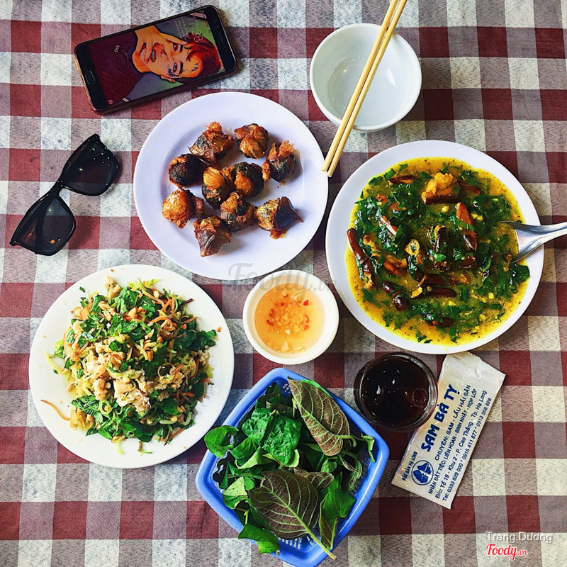 7.4Sam Bà TỵĐây là một trong những quán Sam được yêu thích nhiều nhất. Nếu là người bên Hòn Gai chắc chắn sẽ biết Sam bà Tỵ mở tại Cao Thắng. Quán có không gian đẹp, nhìn sang trọng, rộng rãi, màu sắc bắt mắt. Được bạn bè giới thiệu là quán Noor tiếng, ăn ngon nên cũng đi thử cho bằng chúng bạn 😂😂. Nhiều món không biết chọn món nào chúng mày ợ 😂😂. Nên gọi bừa, thấy món nào nghe tên hay thì chọn thôi. Gọi cũng không nhiều món lắm đâu, tại đắt mà. Một đĩa chân Sam nhiều lắm. 3ng ăn mà gọi ba món như kiểu gọi 6-7 món ý ăn no căng 😊😊. Vừa mút nước ngọt của sốt vừa nhằn chân Sam ngon, nhưng mà mấy đứa cứ nhằn nhìn đểu lắm 😂😂. Có nhiều b không ăn được sam thật ý. Ngon mà, ăn thịt sam thơm lắm, cách chế biến ăn phê luôn. Mỗi tội xa lắm muốn ăn phải đi qua cầu thấy xa xôi lắm luôn. ...Xem thêm