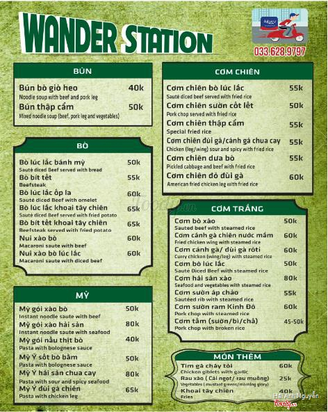 Menu mới từ 8/2018