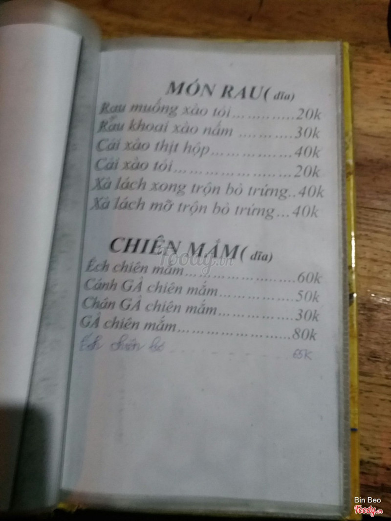 7.6Một lần ghé quánQuán nhậu bình dân có rất nhiều món. Lần này ghé quán mình có gọi chân gà chiên mắm giá 30k ở thời điểm hiện tạo 1 đĩa được 6 chân. Chân gà khá là thấm và giòn ăn ngon và là mồi nhậu tuyệt vời. Bò cuốn nấm kim châm ở quán không ướp gia vị nên cũng không được đẹp cho lắm. Quán có không gian khá là rộng rãi thích hợp hội hè nhậu nhẹt với một chi phí rẻ . Chủ quán vui tính. Quán còn có dịch vụ đưa đón tận nhà rất lạ. Các bạn xem menu và đánh giá nhé ...Xem thêm