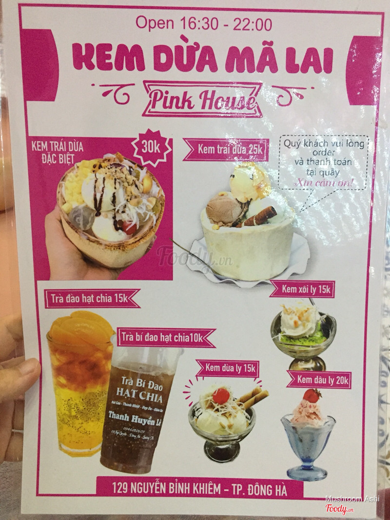 9.2Pink House - Kem dừa Mã Lai-- KHÔNG GIAN: quán dễ thương xỉu, nguyên 1 màu hường chói lọi nha. Quán có khu vực ngồi trong nhà, ở sân trời và ngoài vỉa hè, vị trí nào cũng thoáng mát cả. Bàn ghế gỗ màu hồng nhỏ xíu nhìn cưng lắm. -- CHẤT LƯỢNG: quán kem bán ít món thôi nha trong đó kem dừa là món chủ đạo. 1 phần kem dừa đặc biệt dọn lên nhìn khá hoành tráng, topping ú ụ muốn rớt ra khỏi phần kem luôn. Kem vị dừa dễ ăn, kem mịn và giữ lạnh đc khá lâu, lâu chảy nên ai muốn mua mang về cũng ok nè. Nước chỉ có 2 loại là trà bí đao hạt chia và trà đào hạt chia, uống tạm được chứ ko phải quá ngon. -- GIÁ CẢ: giá ổn phù hợp với chất lượng, dao động từ 10-30K. -- DỊCH VỤ: nhân viên vui vẻ nhanh nhẹn. Chắc chắn sẽ còn quay lại. ...View more