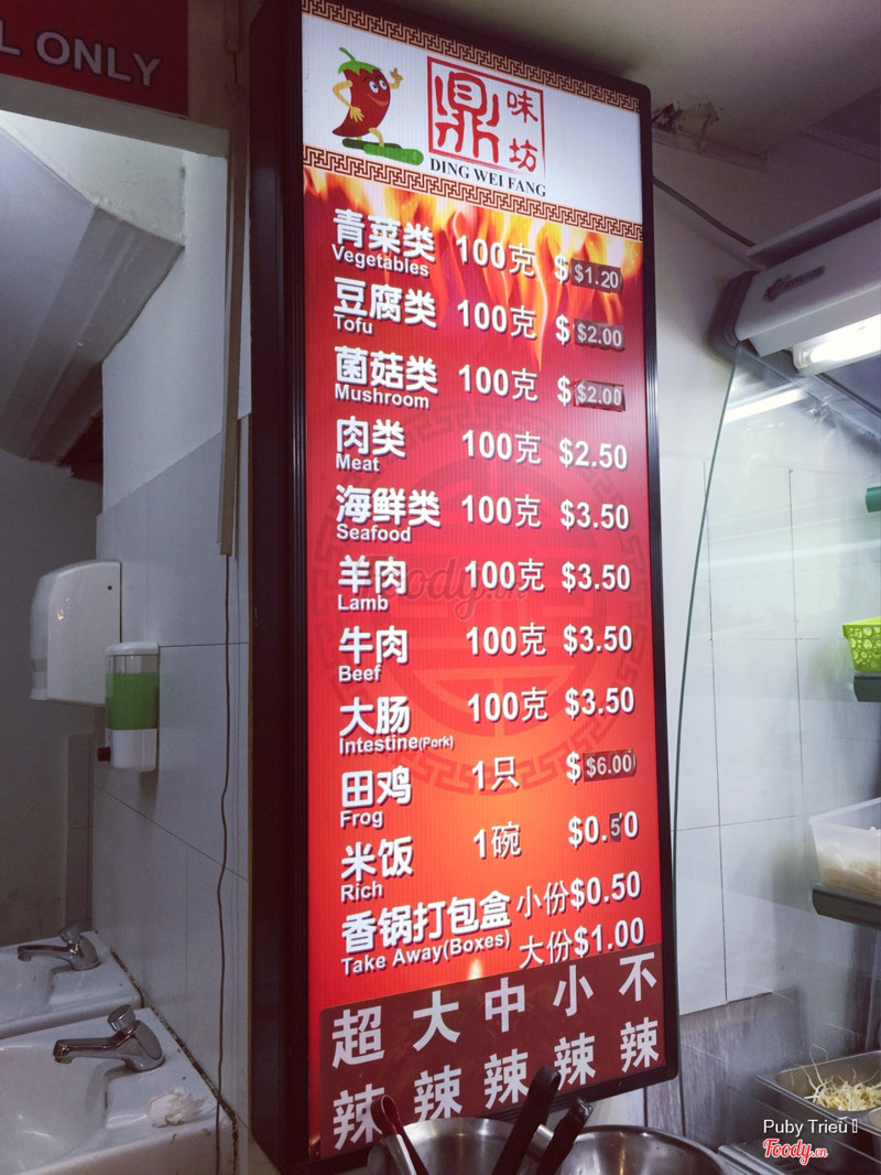 7.8Food District @ Peace CentreHôm mình đi ăn tối muộn và thấy ở đây vẫn mở mà còn rất đông khách. Đây là 1 khu ăn uống với khá nhiều quầy để thoải mái lựa chọn, không gian rộng rãi và bàn ghế sạch đẹp, mỗi cái là sàn nhà nhiều chỗ bị bong tróc rồi. Chúng mình vào quầy Ding Wei Fang để ăn, ở đây là kiểu chọn các loại nguyên liệu xong sẽ được quầy chế biến xào nấu cho. Ở bên trái sẽ có bảng giá luôn để tiện tính toán và chọn đồ, tụi mình tham chọn nhiều đồ khác nhau nên lúc tính ra tiền cũng mất kha khá. Cơ mà đắng lòng ở chỗ, lúc nhân viên hỏi mức độ cay, tụi mình đã chọn medium mà ăn vẫn cay cháy lưỡi, kiểu vừa ăn vừa khóc ý :(( Tụi mình có gọi thêm cả đặc sản Sing ở quầy bên cạnh đó là bak kut teh. Đây là 1 loại súp sườn heo nấu với các loại hương liệu. Lúc bát súp được bưng ra nhìn hấp dẫn lắm, cơ mà mùi kiểu như gói ngũ vị hương ý nên có phần hơi khó ăn hic. Thịt sườn thì ăn rất mềm và ngọt, giá khoảng 6$ một bát này là cũng ổn. Ở giữa khu này có quầy hoa quả và dessert giá hợp lý mà tụi mình no quá rồi nên chỉ ăn dưa hấu thôi, dưa ăn ngọt và mát. ...Xem thêm